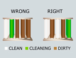 要調(diào)整的脈沖順序,以確保被清灰的濾芯不會被相鄰的濾袋清灰粉塵所污染。錯開的清灰次序,有助于減少二次揚塵。 |
